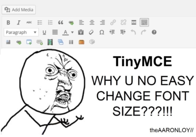 Noticed that there’s no real easy way to change font sizes in WordPress’ TinyMCE WYSIWYG text editor? There are multiple ways around the ... -