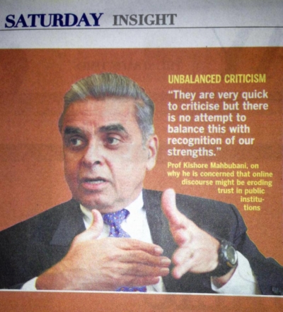 I refer to Prof. Kishore Mahbubani’s claim about the lack of balanced criticism. He says, They are very quick to criticise but there is ... -
