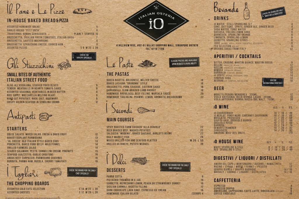 Conclusion. Italian Osteria is a rustic and affordable little joint at hillV2 if you’re in the mood for wonderful, authentic Italian food. It’ll be a new experiene in taste as well, especially if the only Italian cuisine experience you’ve had are from dishes like chicken chop spaghetti.