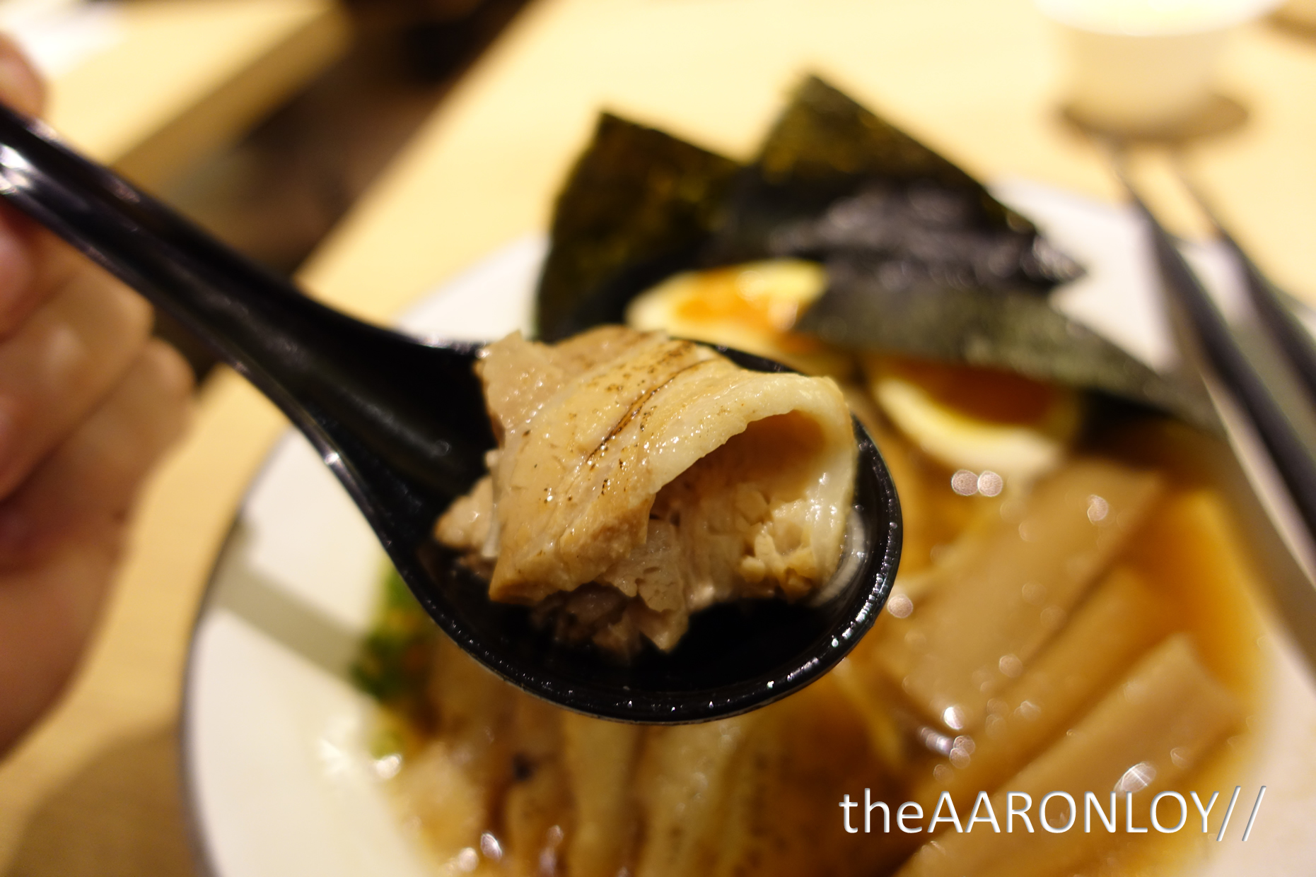 Definitely one of the best I’ve ever had. Even with great chopstick skills, gently placing the tender strip of chashu in the spoon for the shot above caused it to crumble…. which is a good sign. Both fat and the flesh are extremely tender for some melt-in-your-mouth goodness. Damn bloody good.