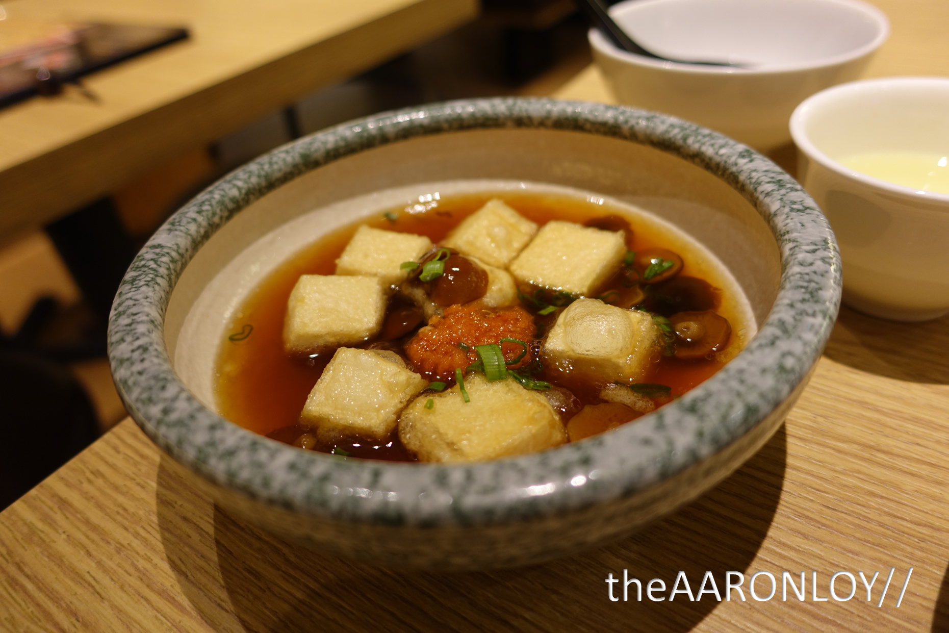 Cut into small bite-sized pieces instead of the usual large blocks, Sanpoutei Ramen’s agedashi tofu is done right with a fried crispy-chewy skin. What sets their’s apart from the rest is its broth, which is silky and thick with a slight hint of mushrooms. Yummy =)