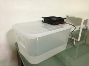 Some of you may already see a problem with the idea, and yeap, it will be inefficient because many, if not most, of the lighter particles may not even come into contact with the water. The best workaround I can think off at the moment is to basically have the fan blow straight down onto the surface of the water. It should also be covered to encourage further contact.