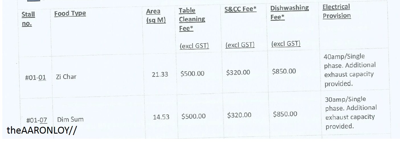 In case you missed it, the asterix means that these fees are not fixed and may be changed throughout the tenancy of the stall. Naturally, this gives NTUC, the currently appointed non-profit management, some wiggle room for when the need to raise the fees arise, at any time (please lah, are you expecting otherwise?).